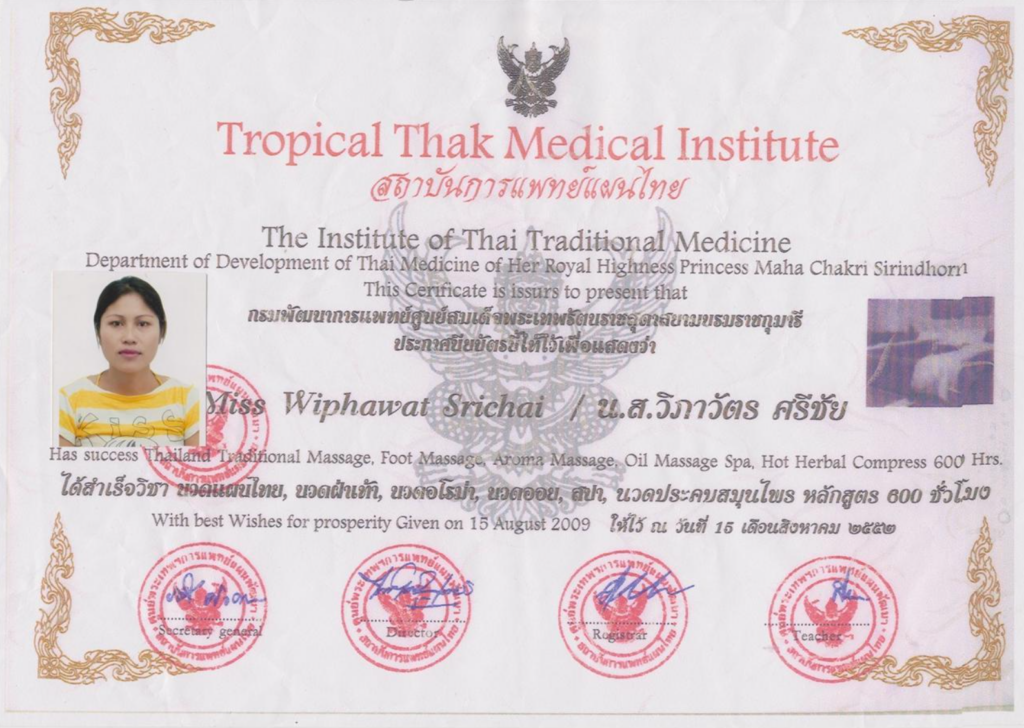 Vår personal är utbildade på världsledande Tropical Thak Medical Institute i Bangkok Thailand!